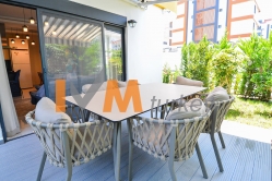 Das 4-Zimmer Apartment bietet 110 m2, der Garten vergügt über 60 m2.
