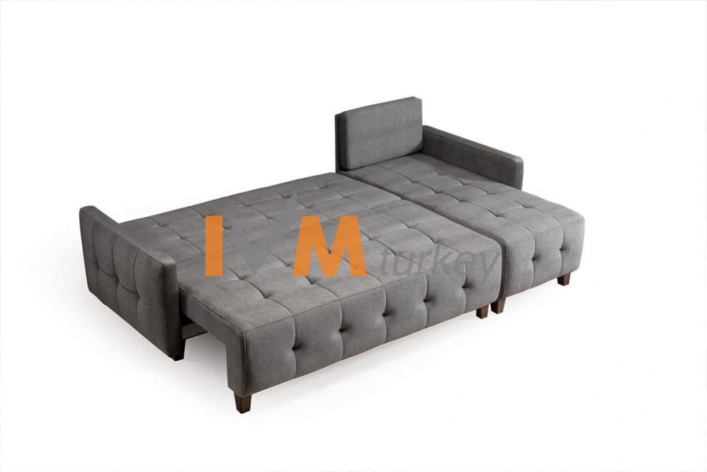 ein Doppelbett im Schalfzimmer und eine aufklappbare Couch im Wohnzimmer